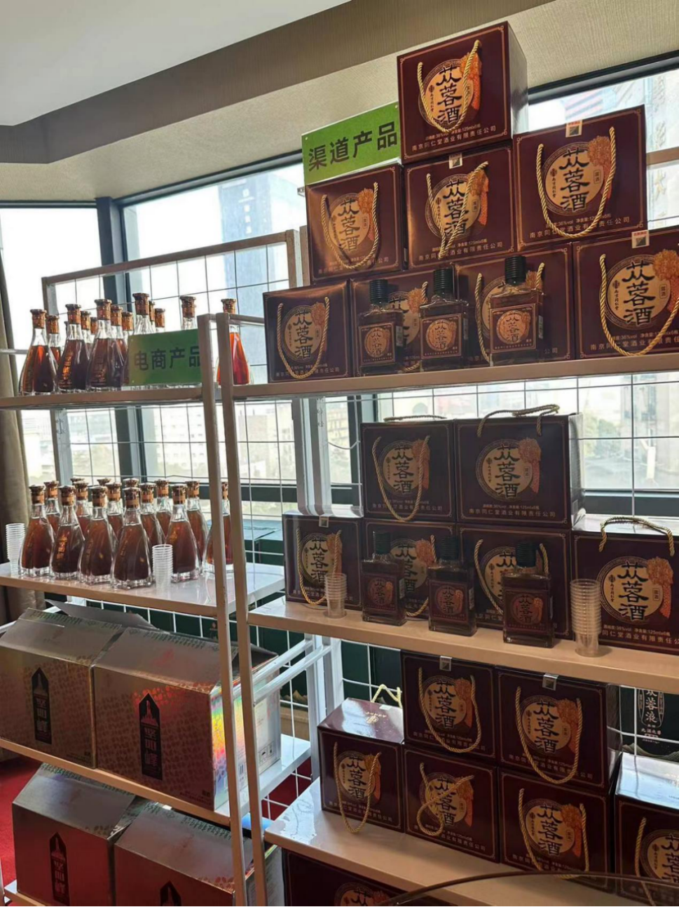 2024年5月5日,渠道产品展出古泉苁蓉酒商务款,酒体每瓶125ml,每6瓶一盒,每四盒一箱,展出,展示期间邀请大家免费品尝,使用一次性纸杯,干净卫生。沙漠肉苁蓉是高大草本植物,是名贵中药材苁蓉分为肉苁蓉和管花苁蓉,肉苁蓉的品质、药用价值要高于管花苁蓉肉苁蓉,被称为“中华九大仙草”,我国十大名贵中药材肉苁蓉目前非常稀缺,因为它的生长、收获需要五六年时间。糖酒会上孙华总经理和各方领导会谈,客户品鉴品鉴苁蓉酒。